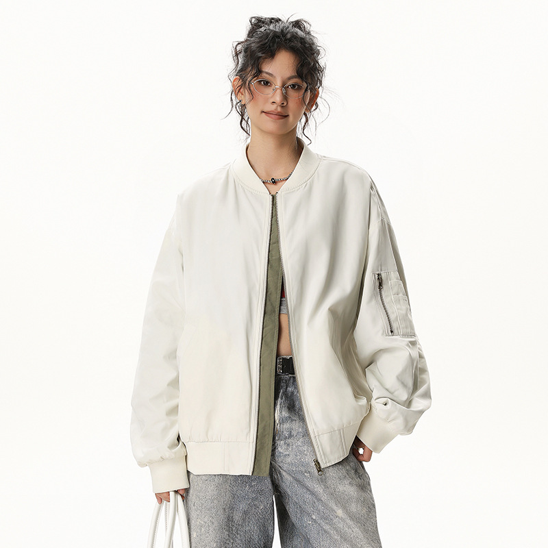 軽やかな素材感とモダンなブルゾンシルエットが、夏のシティスタイルを格上げします。